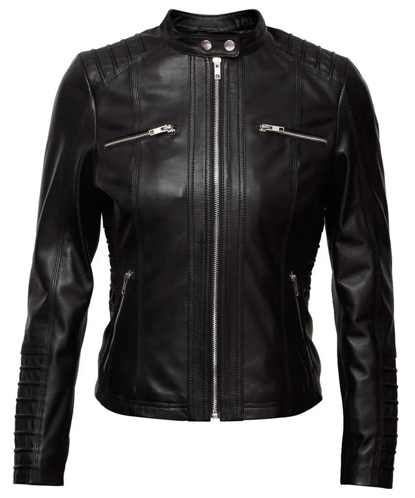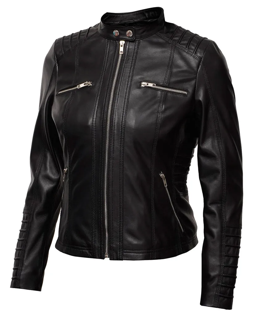 Women’s Cafe Racer Style Real Lambskin Leather Jacket