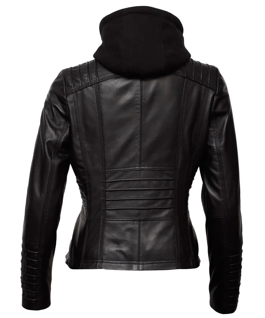 Created for both style and practicality, this Womens Cafe Racer Black Leather Jacket boasts a tailored regular fit that enhances the silhouette; if you intend to layer, it is advisable to size up. Convenient storage is incorporated, featuring two outer side pockets and two inner pockets, including a specific mobile pocket to keep your essentials secure. The hooded cafe racer design introduces a modern twist, allowing for easy dressing up or down. Effortlessly pair it with jeans, skirts, boots, or heels for a confident, trendsetting appearance that transitions smoothly from day to night.